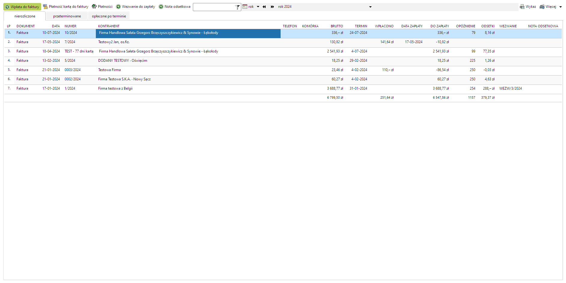 Windykacja faktur nierozliczonych. Rejestr faktur, które nie zostały opłacone. Automatyczne obliczanie odsetek w transakcjach handlowych. Wystawianie noty odsetkowej lub wezwania do zapłaty.