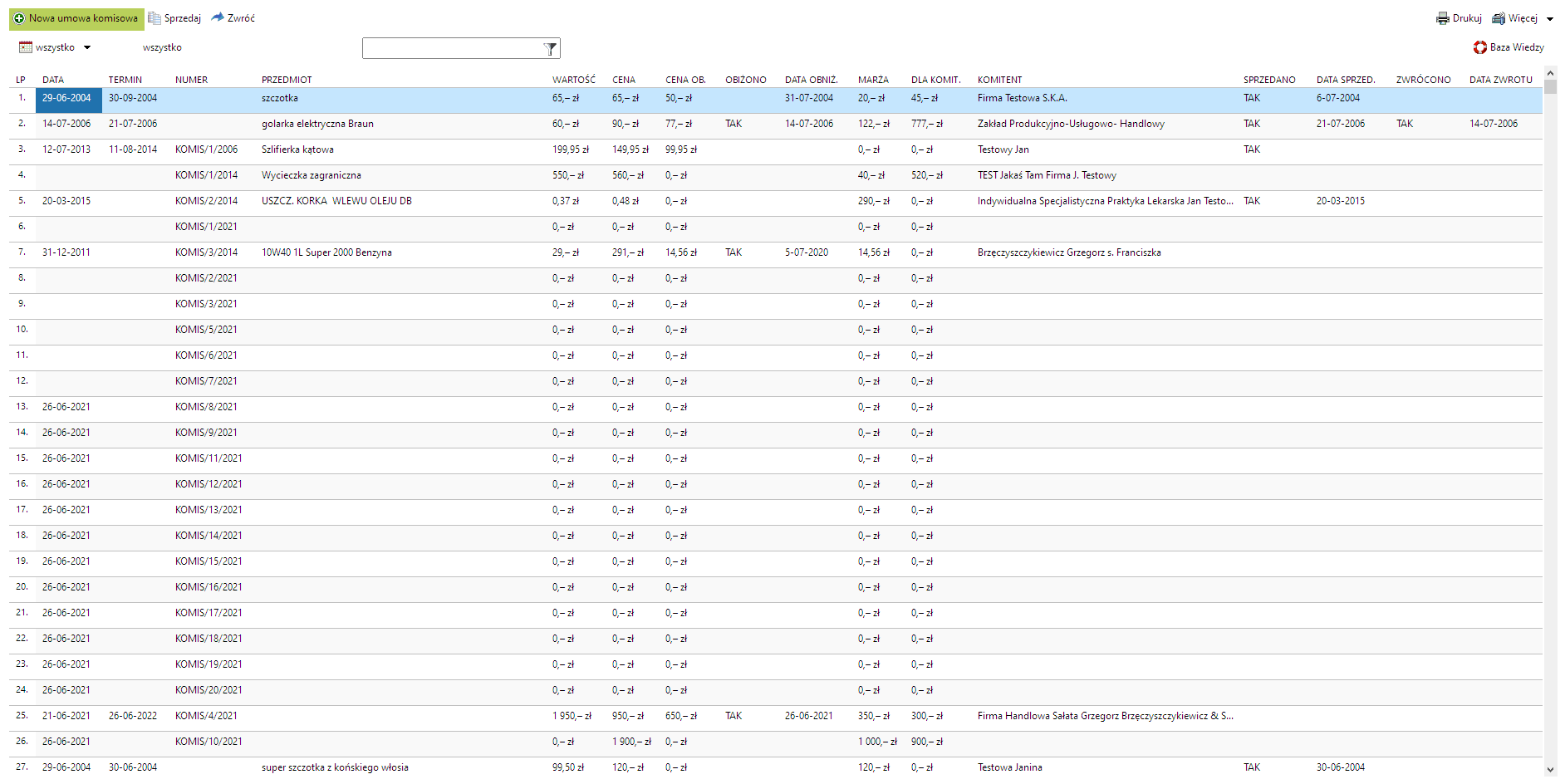 Obsługa komisu, sprzedaży towarów używanych i antyków. Rejestrowanie umów komisowych, przeceny, rozliczanie komitenta. Faktura VAT marża.Moduł Komis jest dostępny w menu Sprzedaż.